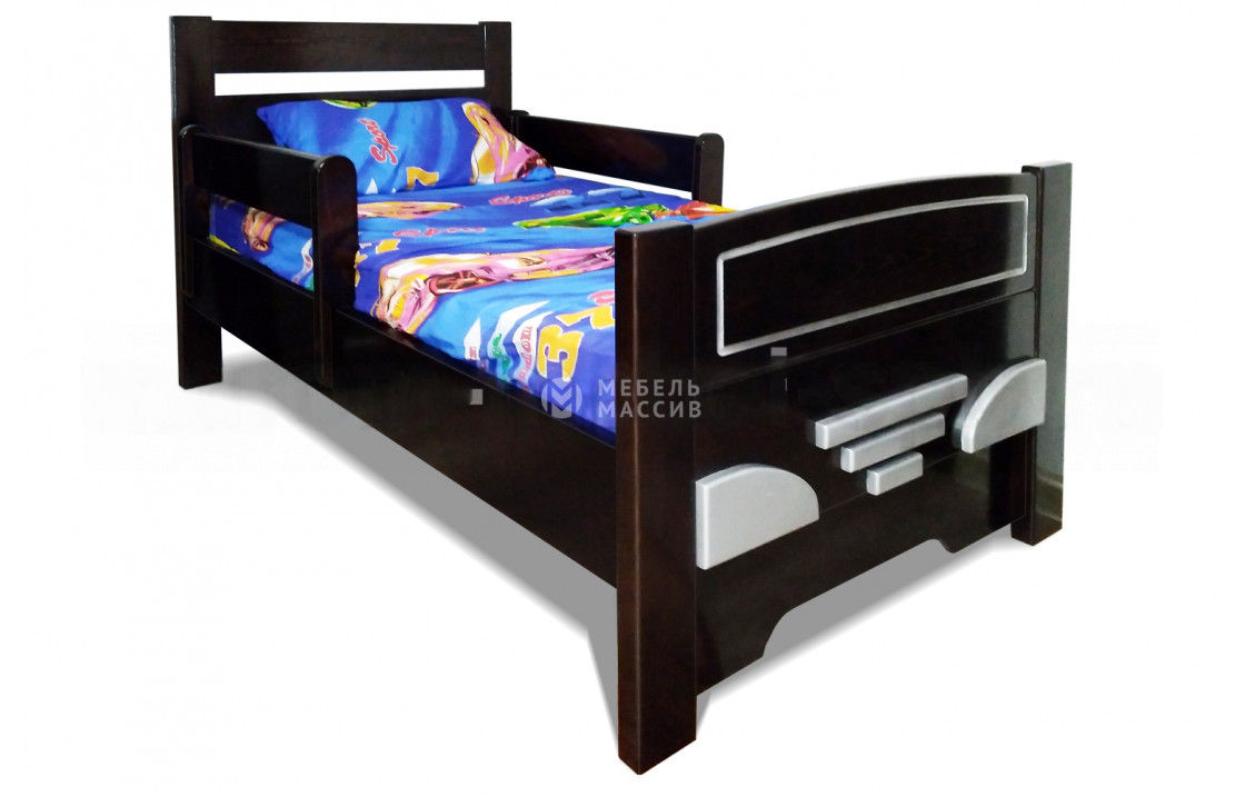 Автошка — необычная детская кровать, которая подойдет для меблировки комнаты мальчика. Материалом для ее изготовления послужил экологически чистый массив сосны. По внешнему виду кровать походит на автомашину, особенно здорово продумано дизайнерами изножье - прорези в виде капота автомобиля. Спальное место находится на средней высоте, так как ножки приподнимают кровать над уровнем пола. Для защиты от случайных падений во время сна или игры предусмотрены борта у изголовья. Подобный дизайн положительно влияет на создание уютной атмосферы, что важно для ребёнка. При заказе маленький покупатель получит возможность смены цвета дерева.