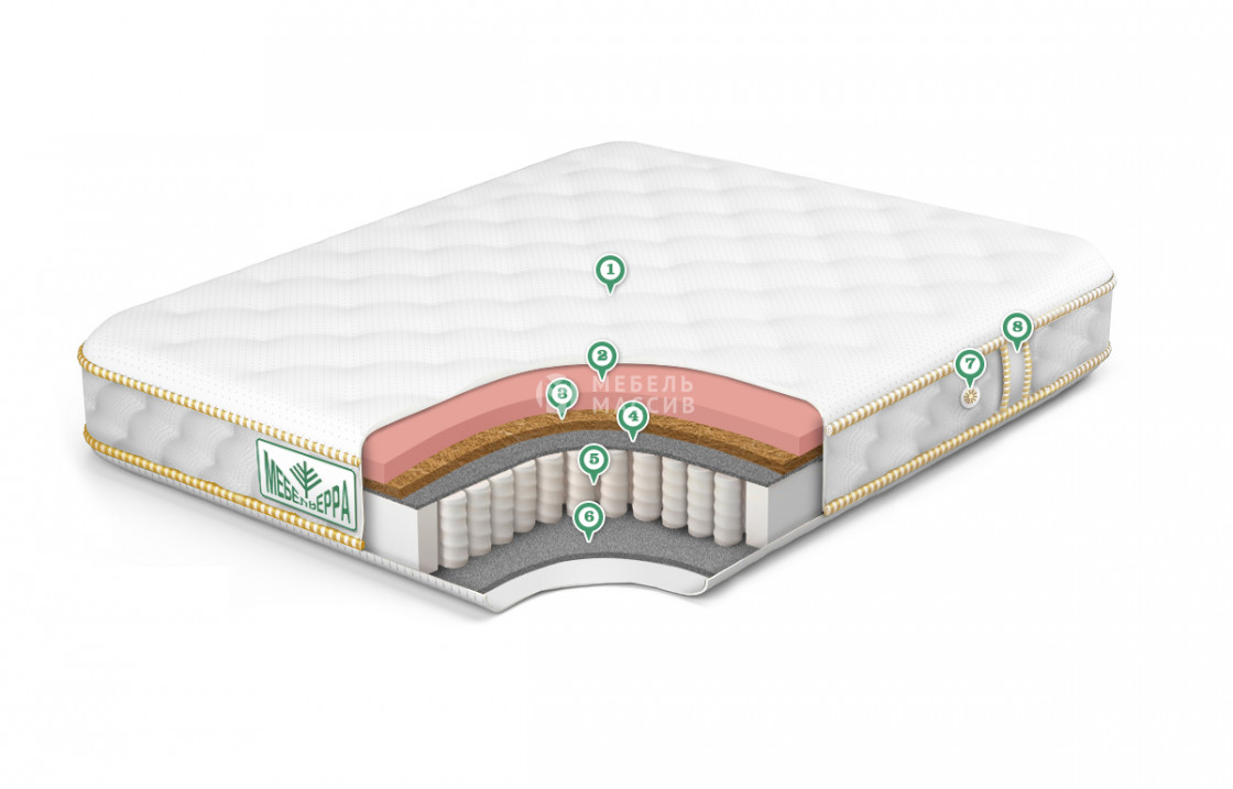 - Кокос 2 см ? Кокос - переплетенные волокна кокосового ореха, растительного происхождения. Исключительные свойства кокоса в прочности, упругости и гигиеничности. Материал придает жесткости матрасу. Обладает отличной вентилируемостью, устойчив к любой влажности и перепадам температуры, гипоаллергенный и долговечный.